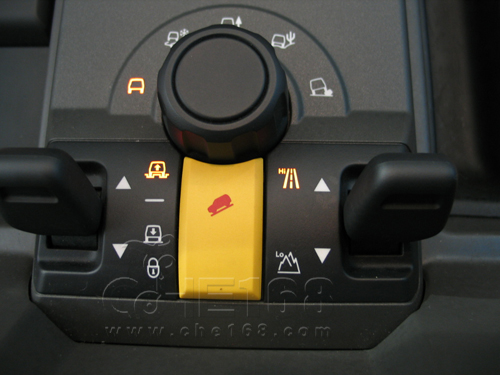 在路虎的全地形反馈适应系统中共有多种挡位设定,分别有普通、草地-沙砾-雪地、泥泞和车辙、沙土、岩石模式。